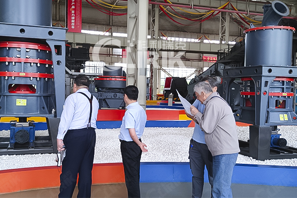 江蘇李總來廠考察加工玻璃磨粉設備超細磨粉機HGM80A,80-400目
